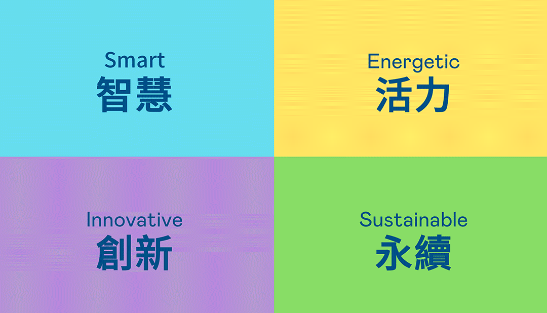 從穩重、信賴的EZPay藍開創新色彩,注入象徵智慧藍、活力黃、創新紫、永續綠的品牌色及動態多變的幾何圖形,呼應不設限的「Possibilities」精神,代表多元的專業技術及領域,在碰撞中相互觸動、融合、延伸,持續激盪出更多新的可能性。